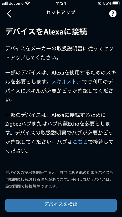 スマホでAlexaアプリを開き、デバイス→+ボダンを押します。